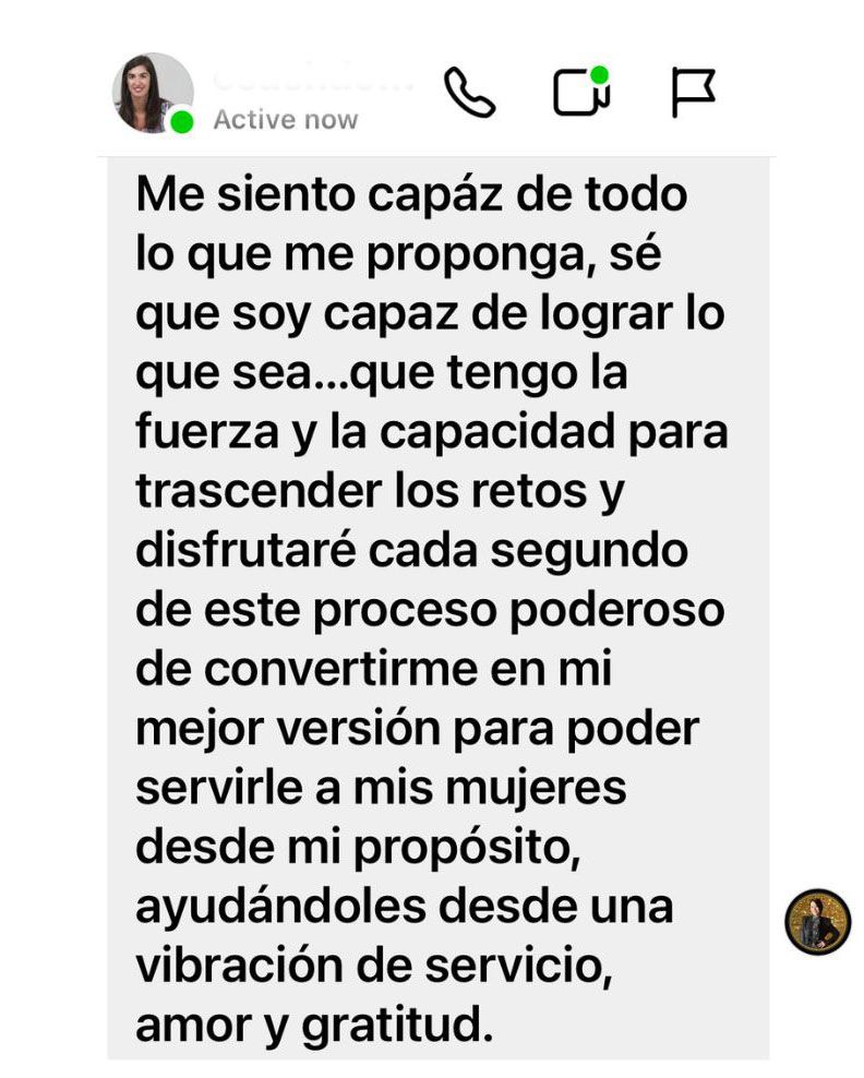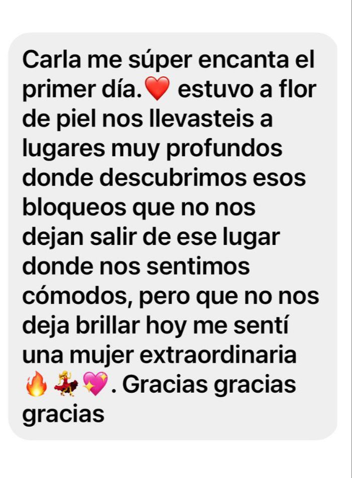 “Este proceso no solo cambió mi negocio, cambió mi mentalidad, mi relación con el dinero y mi legado. Gracias Carla por ser ese ORO y enseñarnos a brillar”