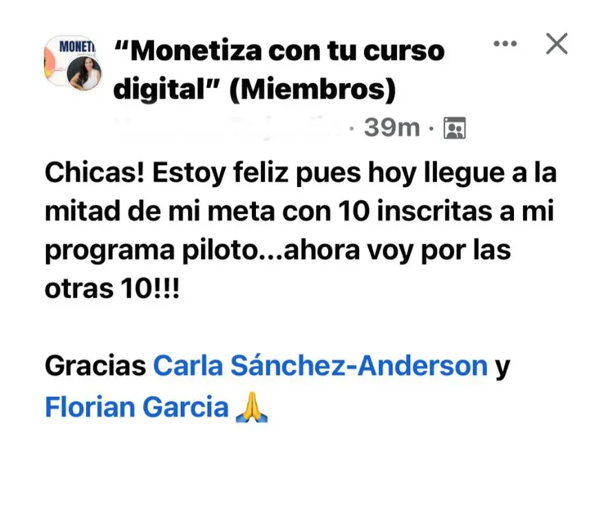 “He logrado monetizar más de $5000 dólares con mi curso piloto”.