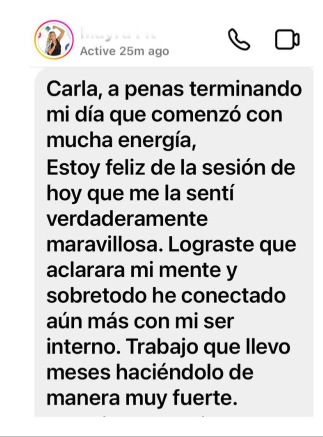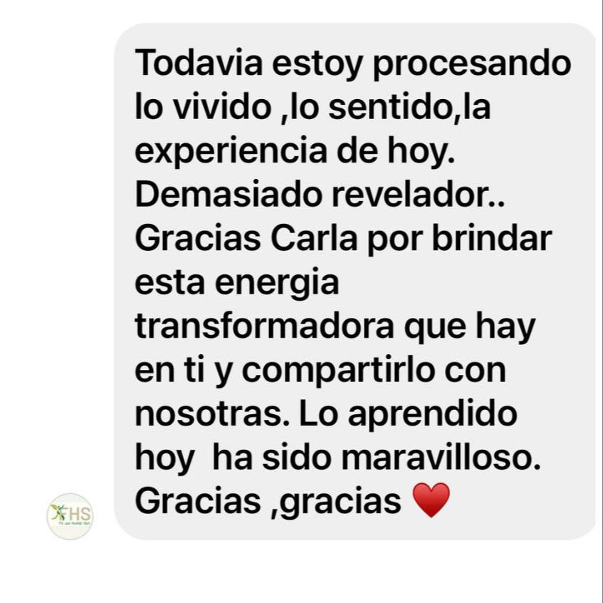 “El acompañamiento a nivel del Ser y la integración que hace es maravillosa. Carla me ha ayudado a estar en mi poder y conocerme a mi misma.”
